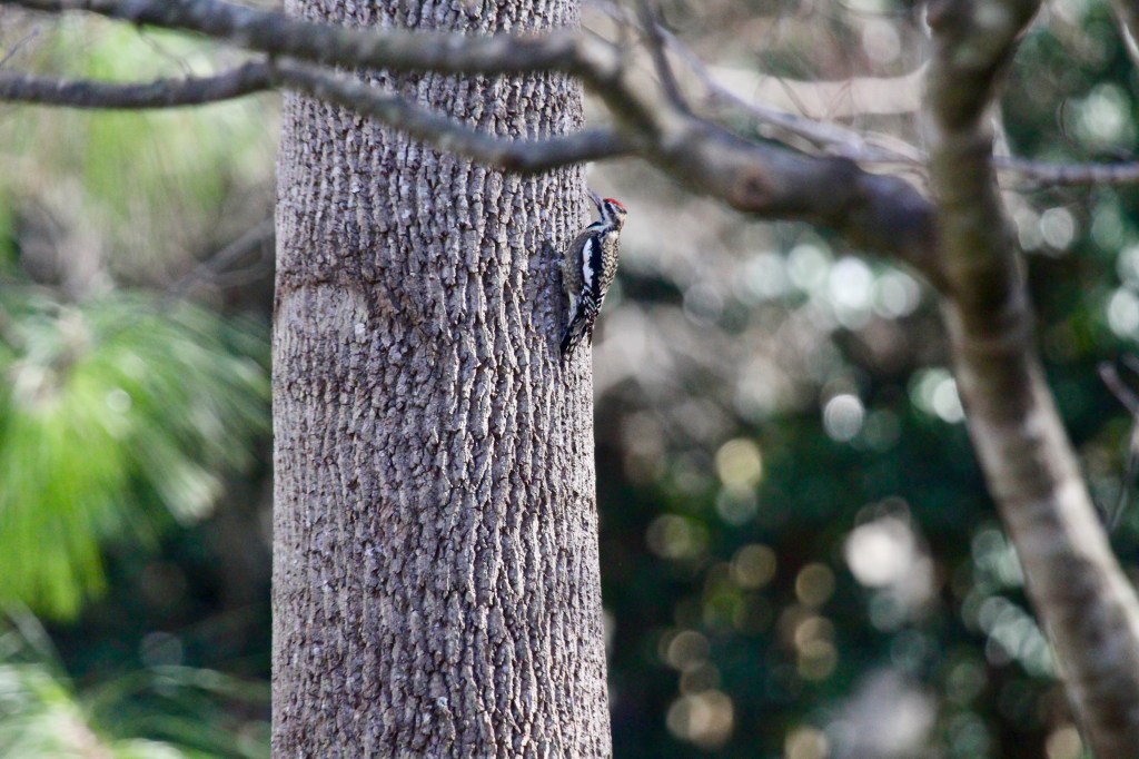 The yellow-bellied sapsucker (Sphyrapicus varius), also referred to as the red-throated, squealing, and whining sapsucker (McAtee 1911), is a species of woodpecker found across eastern North America. This migratory species breeds in the hardwood and coniferous forests of Canada, the upper Midwest, and the northeastern United States. In winter, yellow-bellied sapsuckers reside in the southeastern United States, Mexico and Central America, and the Caribbean.