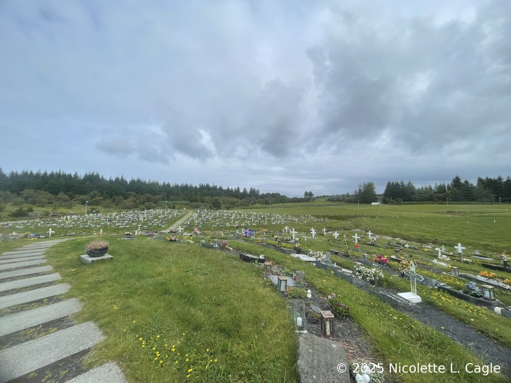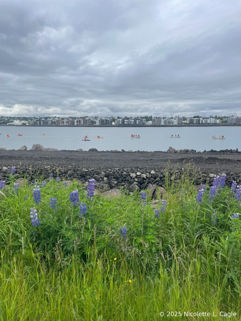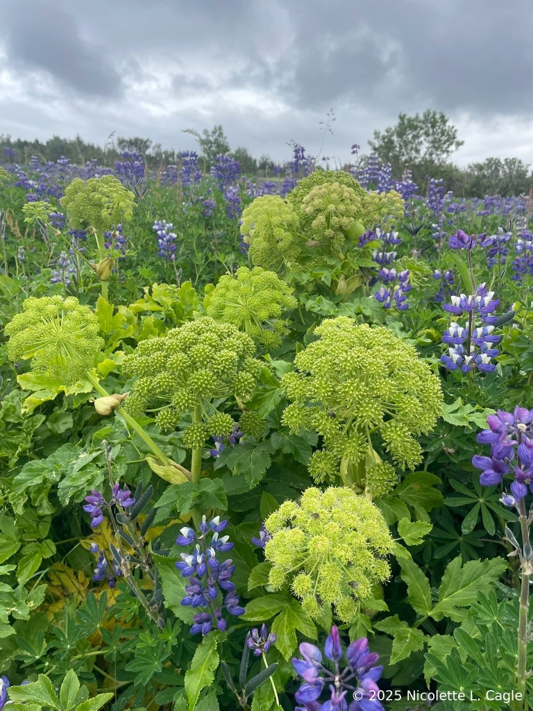 We woke up and took a taxi to Öskjuhlíð with a driver named Viktor. We walked the waters edge, stepped on a sandy beach, climbed rocks to photograph Campions. We explored the edge of a runway, catching sight of a Whimbrel and Meadow Pipits. We turned around, tracing our steps along with shore and walking beyond them, finding Redpolls singing in the shrubs, inhaling the scent of wild thyme, watching the busy white-butted Forest Bumble Bees, legs loaded with pollen in massive round green heads of Angelica archangelica. We listened to the whistling wings of snipes that flew high all around us. We walked into a foreign forest full of Sitka Spruce and European Mountain Ash. We emerged at the cemetery, a peaceful place with gentle and kind energy: gravestones etched with traditional names — first name, dads first name’s dottir. We walked up the hill and called a taxi, and encountered again, our driver named Viktor.