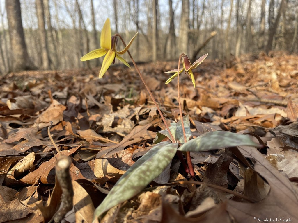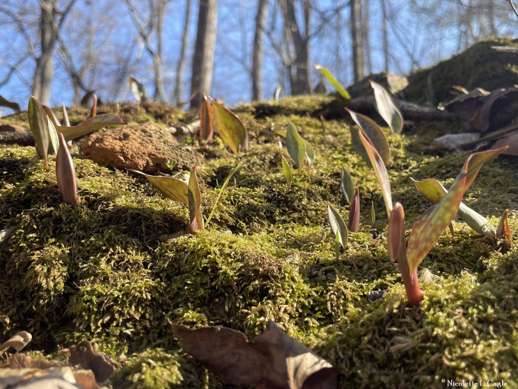 Spring ephemerals are woodland plants that bloom early in Spring, capturing sunlight that hits the forest floor before the trees leaf out. Some of these ephemerals, like Trout Lilies (Erythronium sp.) have colonies that are over 100 years old!