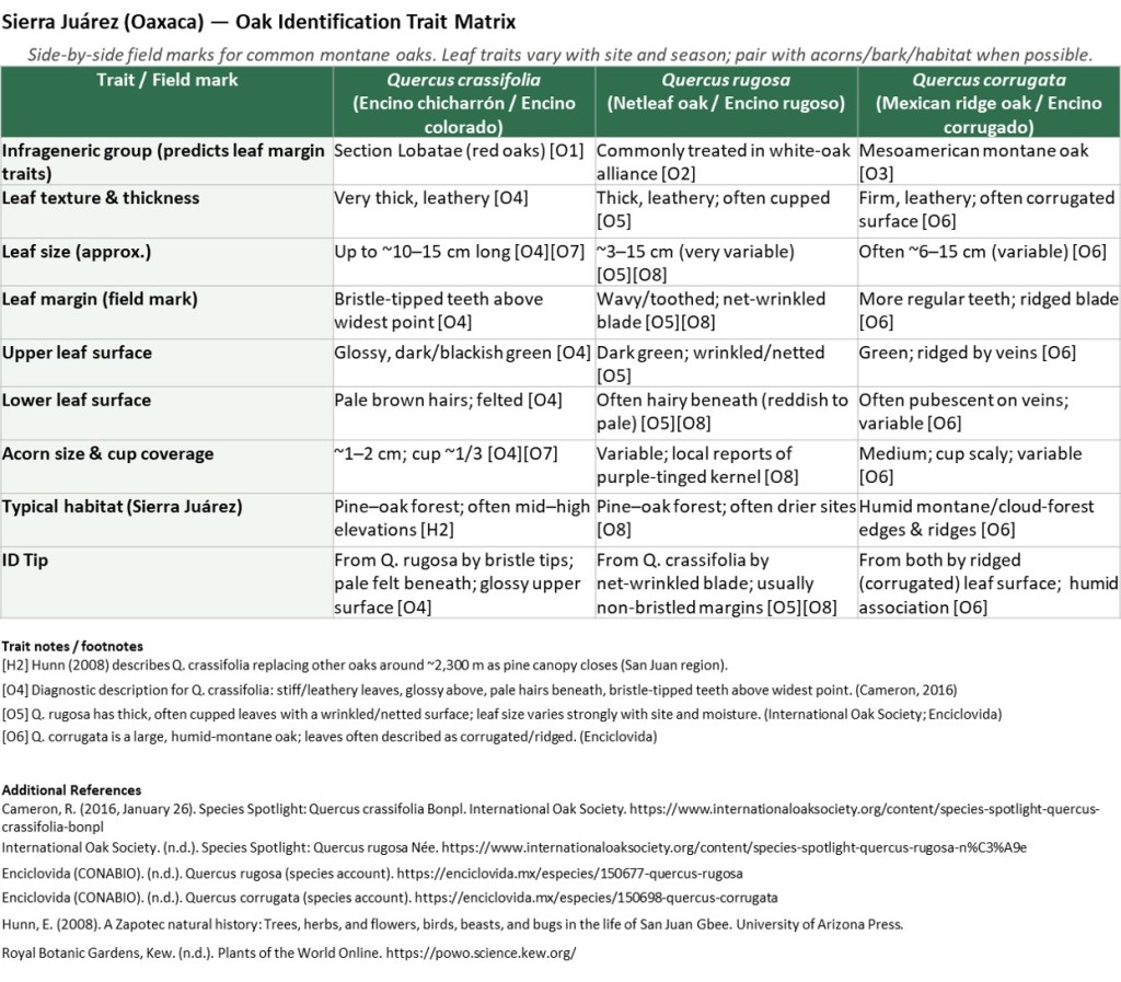 Note: In terms of tree species, according to iNaturalist records (23 Jan 2026), the most commonly recorded tree species in the Sierra Juarez region, listed in order, include the following and showcase the sampling bias at play with crowd-sourced data:
